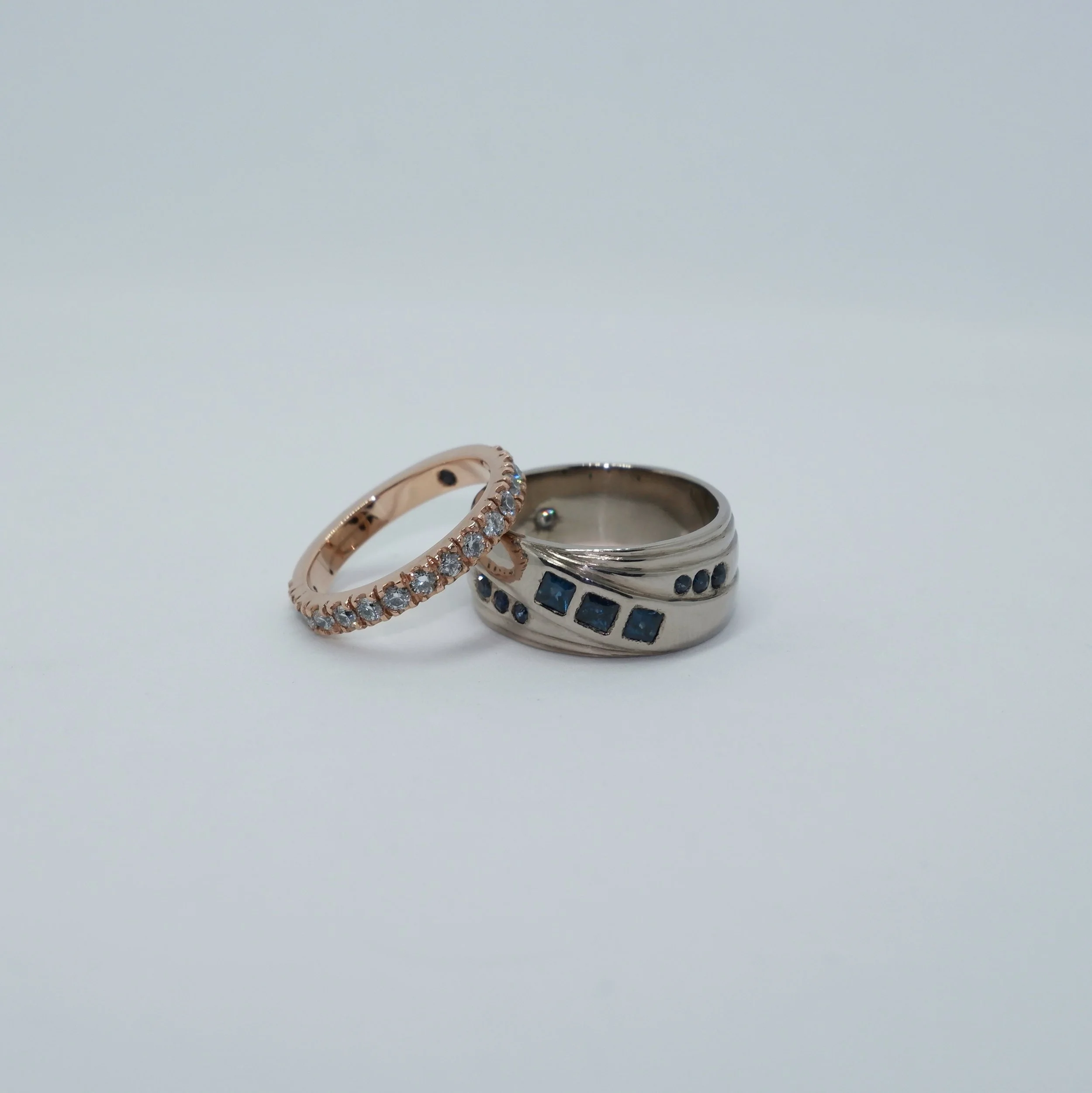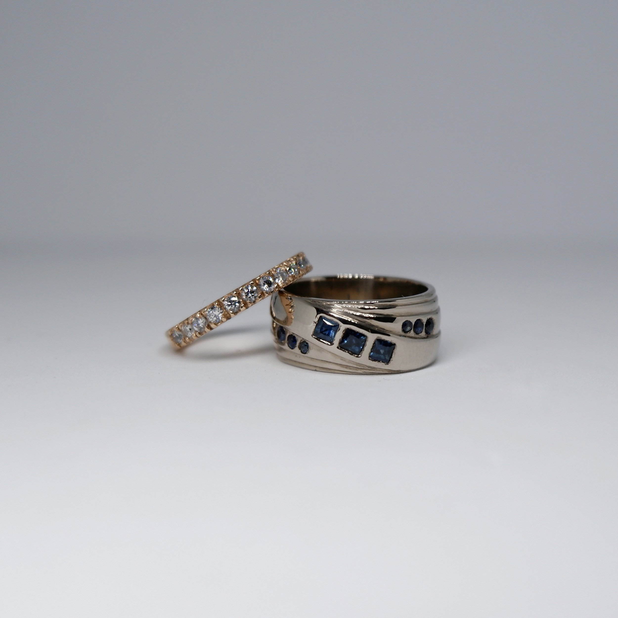 Collection of some custom bespoke items, ranging from engagement and wedding ring sets, to silver letter openers.